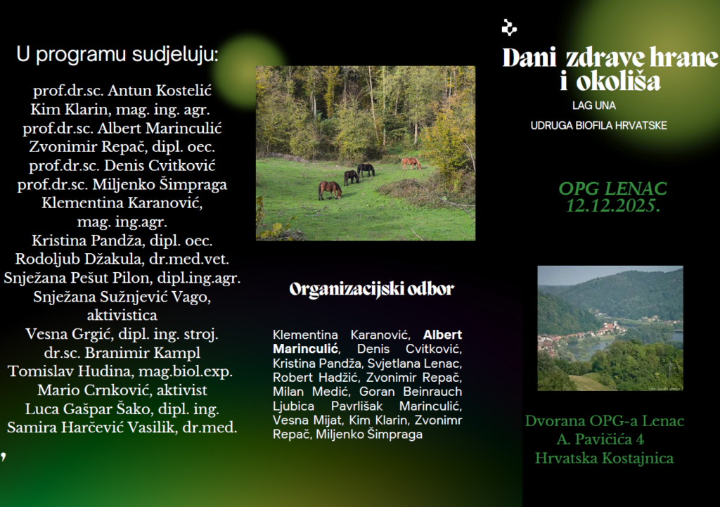 Ovaj događaj okuplja ugledne predavače, stručnjake iz područja ekološke poljoprivrede, zaštite okoliša, stočarstva i održivog razvoja te predstavlja priliku za razmjenu znanja i iskustava koja su ključna za budućnost područja LAG-a Una i Sisačko-moslavačke županije.